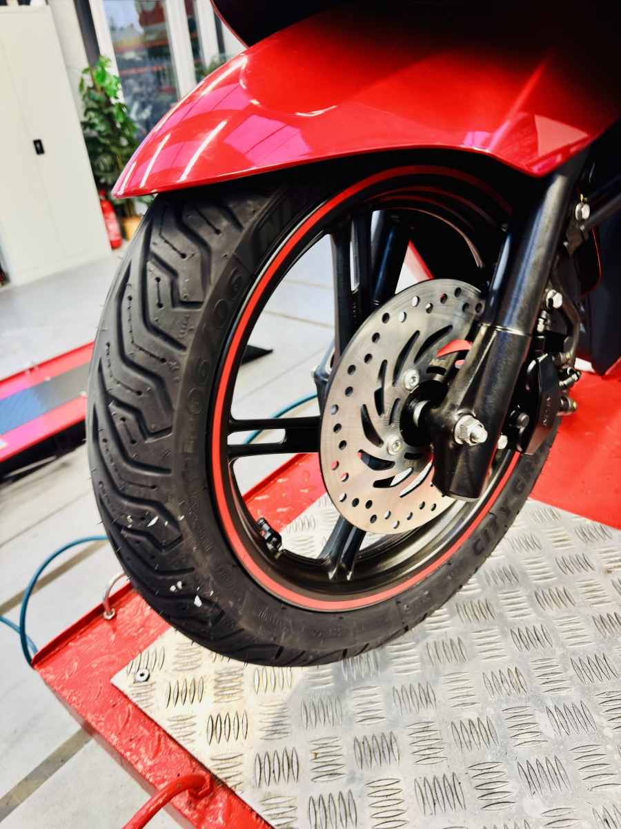 Pomiar wykonujemy u nas w zakładzie, po wcześniejszym pozostawieniu motocykla. Nie wykonujemy pomiarów ”od ręki” ze względu na złożoność procesu przygotowania pojazdu do badania. Po uzgodnieniu jest możliwy dojazd do klienta i pomiar na miejscu, ale tylko w określonych warunkach. Głównym warunkiem „mobilnego” pomiaru u klienta jest odpowiednio przygotowany motocykl. Zawieszenie oraz półki muszą być zdemontowane tak aby był swobodny dostęp do główki ramy motocykla. Krańce osi wahacza muszą być widoczne z lewej i prawej strony ramy i nie mogą być niczym zakryte.